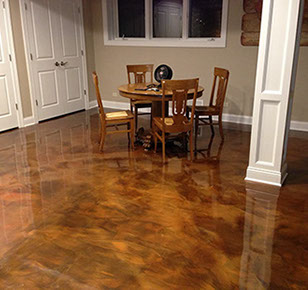 The hottest trend is epoxy metallic floor coating! Commonly referred to as marble epoxy coating. Its used in retail environments as well as bars, restaurants, hair salons, and yes even car dealerships floors. Because it has very low VOC (Volatile organic compounds are emitted as gases from liquids) it can be applied in your own basement floors.